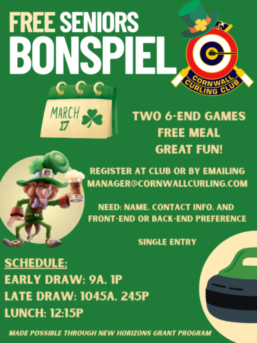 The initial draw for our FREE St. Patrick’s Day Senior’s Bonspiel (made possible through the New Horizon’s grant) is set!